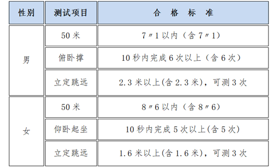 二、面试、体检、体能测试项目及合格标准