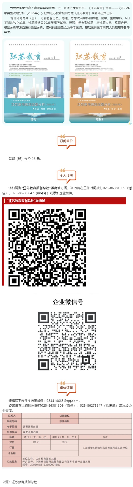 教育报刊总社《江苏教育》编辑部正式出版《江苏高考典型试题分析(2025年)》