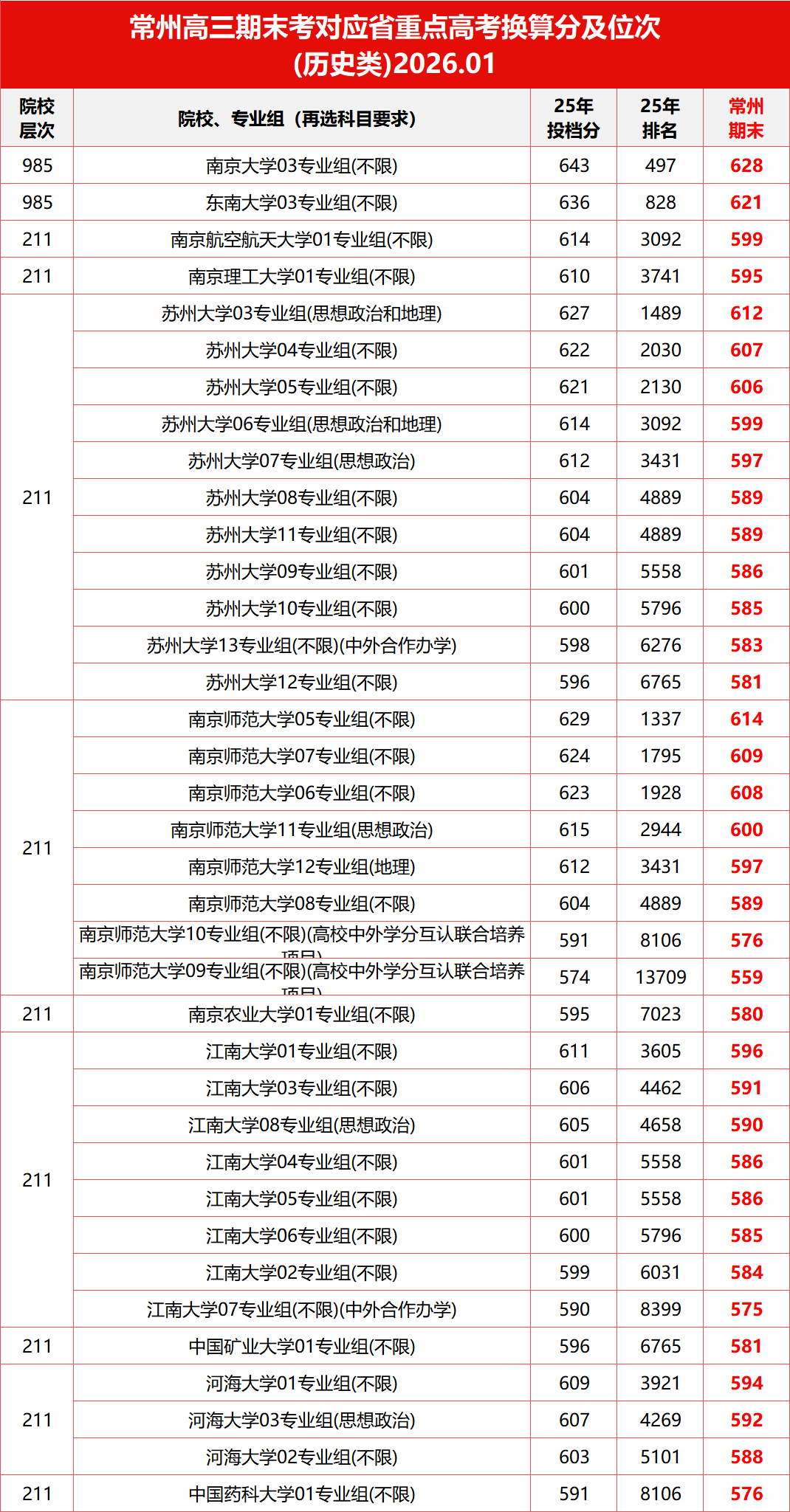 数据说明:分数线是根据常州高三期末划线利用线差法计算而来,仅供参考。