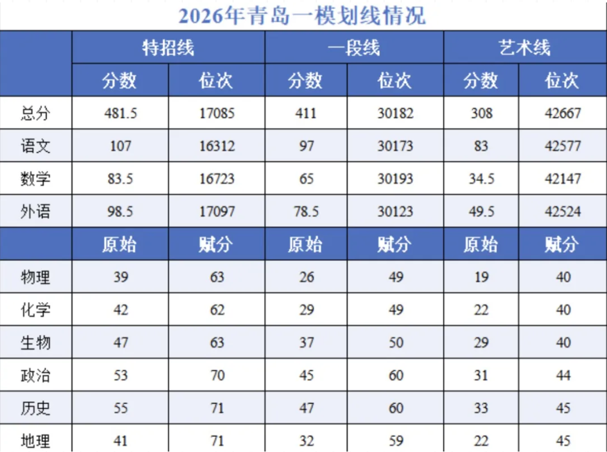 2026届高三青岛一模划线情况