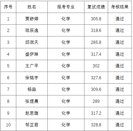 同济大学化学科学与工程学院2022级强基计划本研转段招生考试复试结果